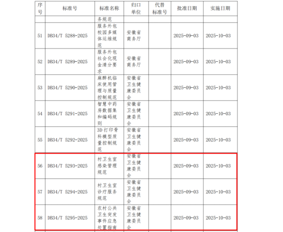 本次获批发布的地方标准对完善我省卫生健康标准体系、推动村卫生室管理服务提质、提升农村公共卫生突发事件处置的标准化与专业化水平具有重要作用。