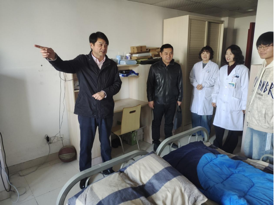 随后,张兵一行在医院领导的陪同下,通过深入课堂、走访宿舍、召开座谈会等多种形式,全面考察了学生的学习和生活情况,与教学点师生进行了深入交流。张兵指出大学生应珍惜韶华,勤学笃行,掌握真才实学,打牢专业基础,练就过硬本领,勉励大家要团结友爱,互学互助,营造良好的宿舍氛围,提升生活质量。